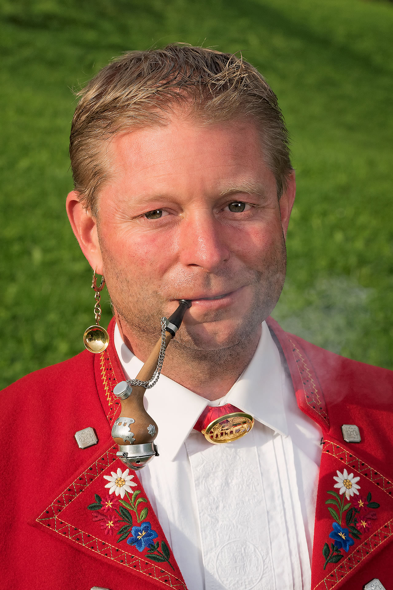 Auf seinem Akkordeon Record Grandioso zaubert er echt grandiose Begleitungen, und ausserdem ist er unser grandioser erster Bass. Ländlermusik fasziniert ihn und alles, was vier Räder und einen Motor hat. Der gelernte Spengler ist deshalb mit Freude Postauto-Chauffeur. Auch in der Jodlergruppe ist er der verlässliche Schofför. Er ist der ruhige Pol, liebt seine vier Kinder, das Brauchtum, das Silvesterchlausen, Suppe, Grillfleisch ond guete Back im Lindauerli.