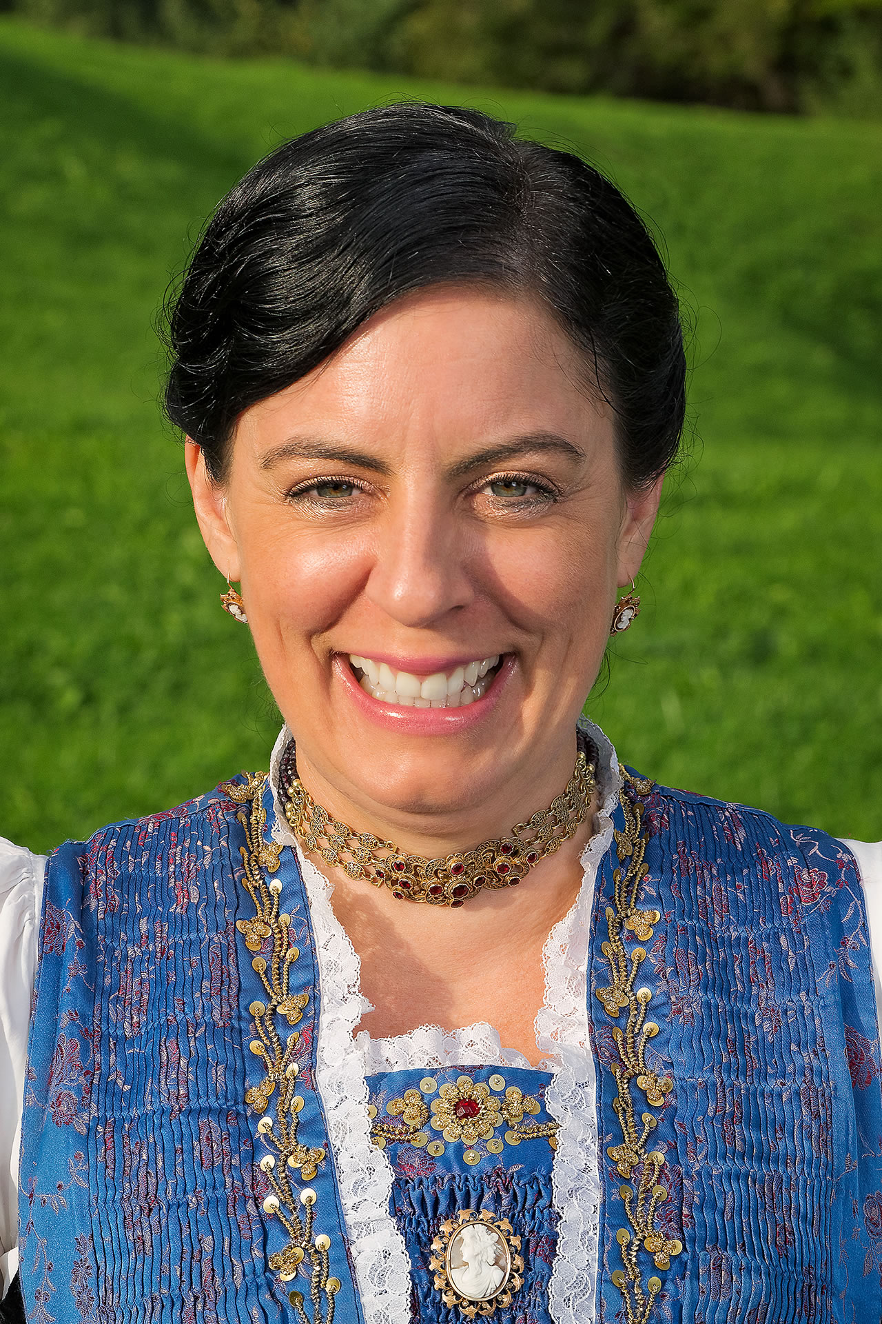Gesangsfreudig wie ihre Eltern, singt die 1. / 2. Jodelstimme. Unsere Präsidentin hat vier Kinder, das fünfte sei die Jodlergruppe. Hat immer Ideen, kann kaum ruhig sitzen, geht dann doch als Letzte nach Hause. Ist Köchin und Servicefachangestellte. Ihr Lieblingsgericht: Schampus zum Apéro, Rindstatar zur Vorspeise, Rindsfilet zum Hauptgang und Appenzeller Alpenbitter als Vetääleli. Ist grosser Fan der Kastelruther Spatzen und ihrer neuen Haarspange.